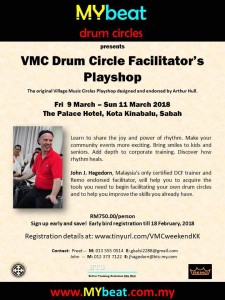 MYbeat VMC Drum Circle Facilitators Playshop Date: 9-11 March 2018 Venue: The Palace Hotel, KK, Sabah Register at: www.tinyurl/VMCweekendKK Continue Reading » Cheryl 7 years ago local news